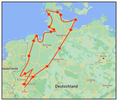 Recke – Mühlheim a.d.Ruhr – Duisburg – Dorsten = 253 km