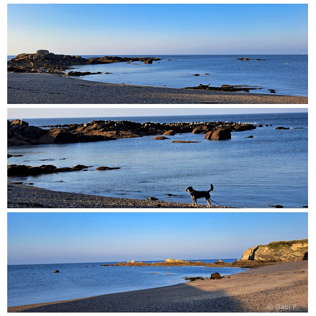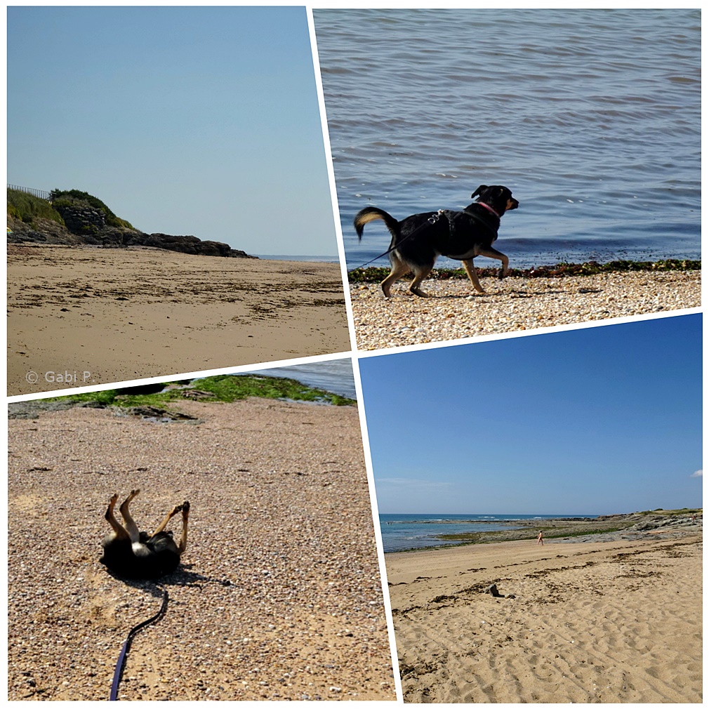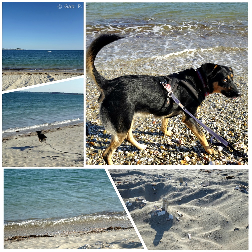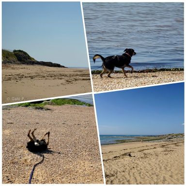 Heute früh beim Gassigehen habe ich noch einen Strandzugang ganz ohne gefährliche Treppe gefunden und Eni wenigstens kurz mal flitzen lassen.