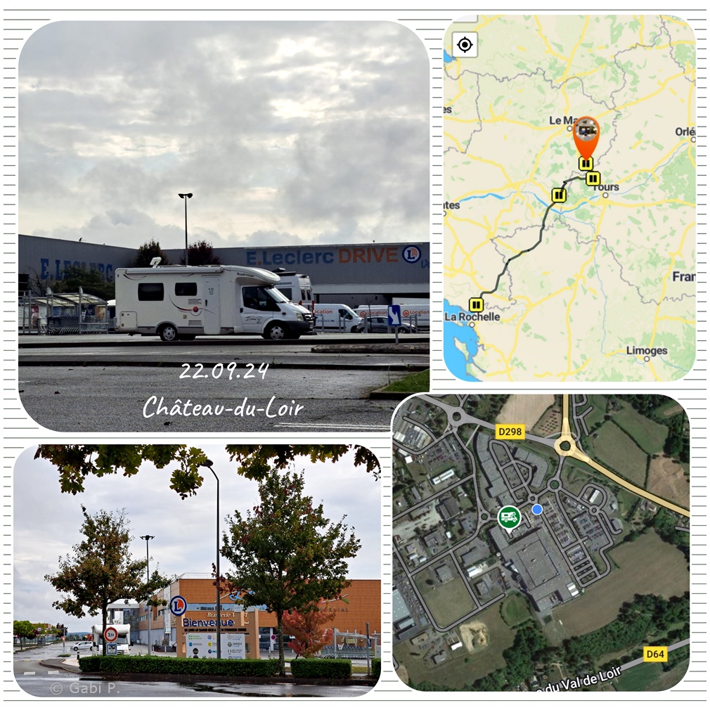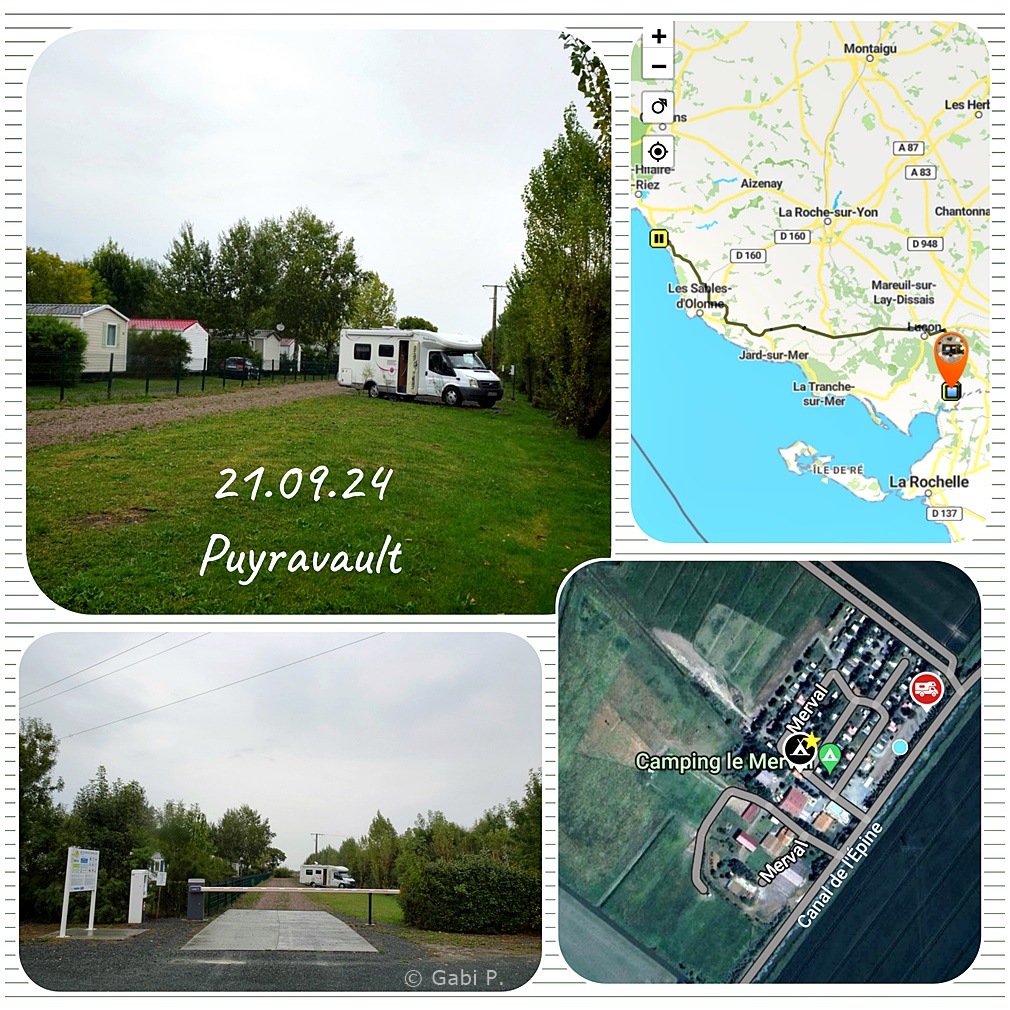 Heute stehen wir in Puyravault. Direkt vor dem Camping Le Merval | Aire autonome camping-car.