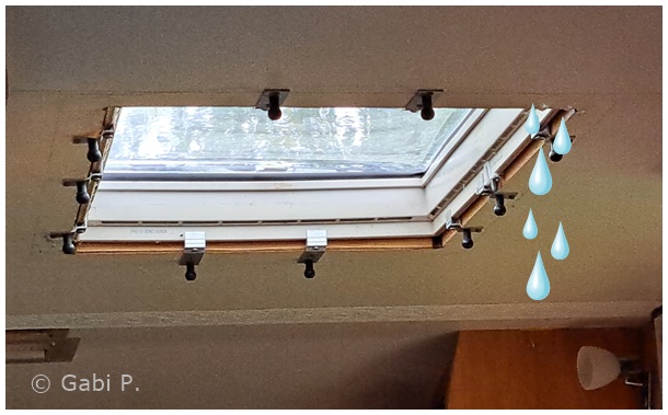 Denn als wir damit beginnen wollten, regnete es schon wieder, und zwar an der Dachhaube rein,