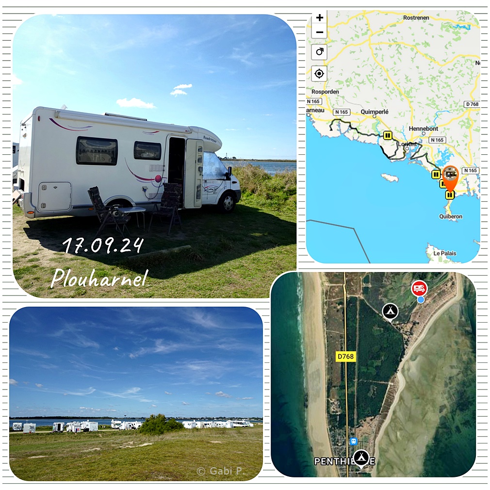 ... weiter zum nächsten Stellplatz, Aire de Kerhillio, keine Wiese, viel zu weit weg vom Strand, eine Musikbar gleich neben an und Strom 5€/ 8Std noch extra drauf....
