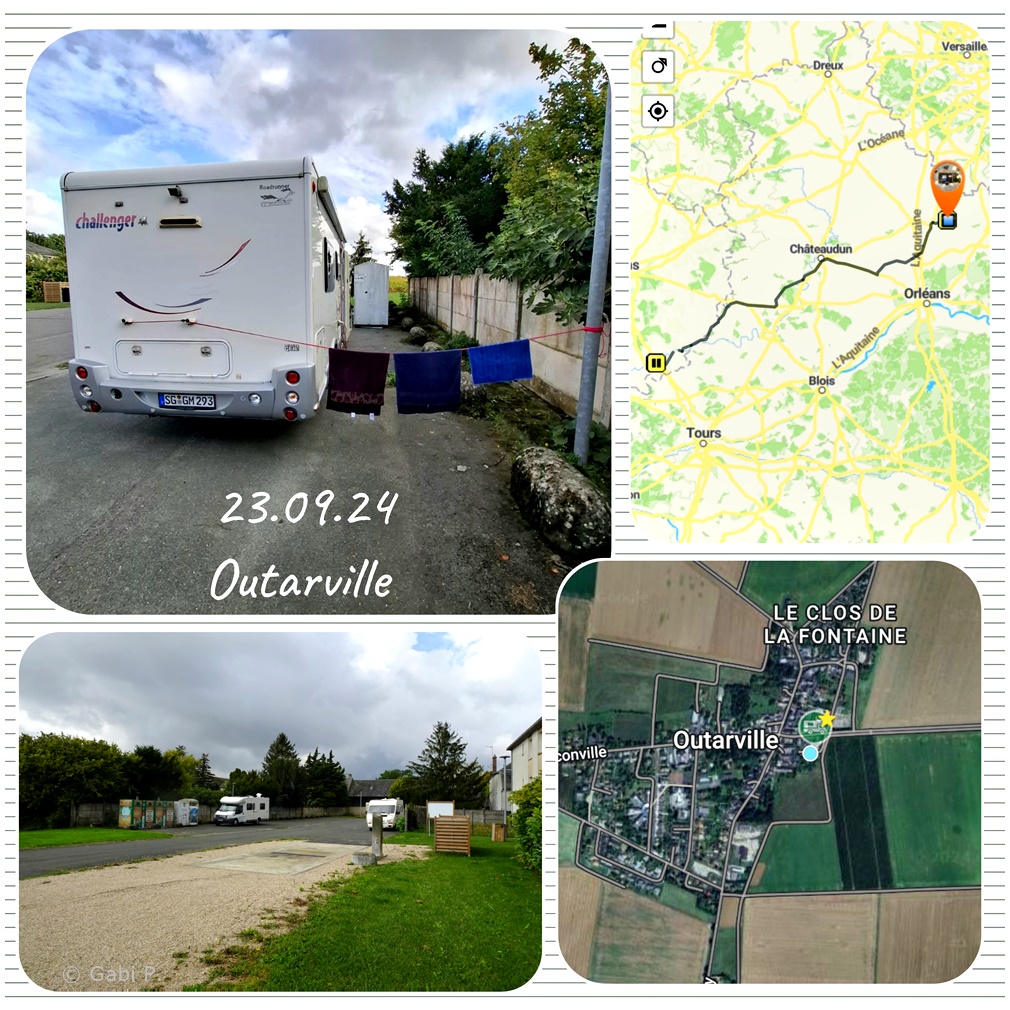 Mittags kamen wir bei einem kleinen kostenlosen Stellplatz in Outarville an.