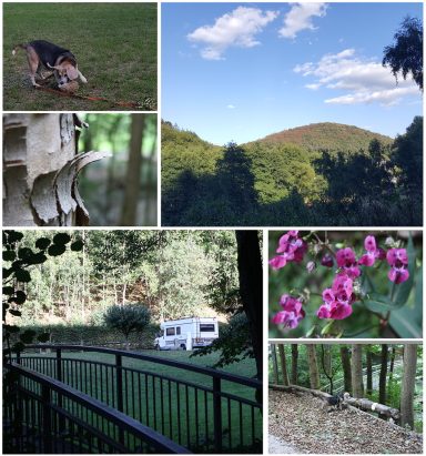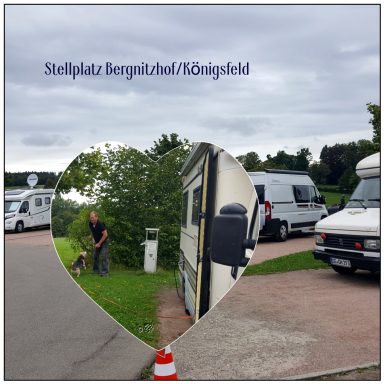 So fuhren wir noch 20 km weiter bis nach Königsfeld. Hier haben wir sogar wieder ein bisschen Wiese für Dina.