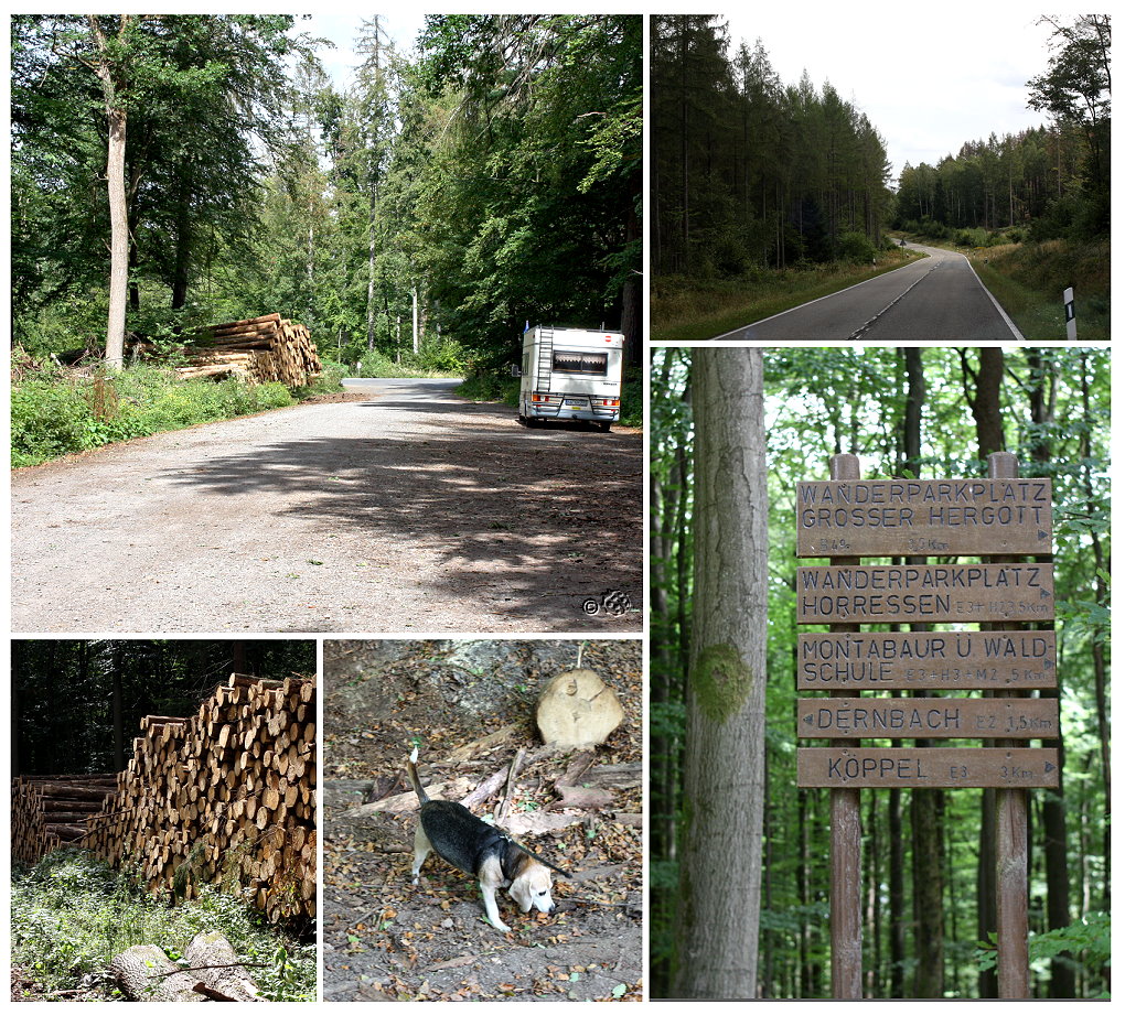 In der Nähe von Montabauer haben wir auf einem Wanderparkplatz Mittagspause und einen Wald-Spaziergang gemacht.