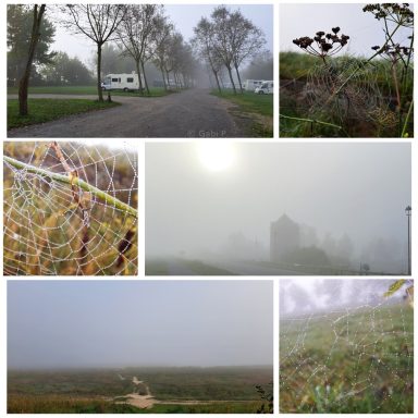 Dichter Morgennebel, es sah richtig herbstlich aus. Das Meer bzw. auch der Strand waren weder zu hören noch zu sehen.