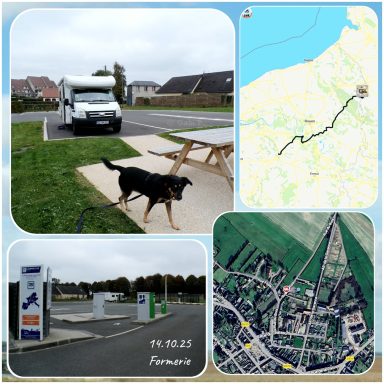 Ausgesucht hatte ich für heute einen kostenlosen Stellplatz mit Strom, den wir letztes Jahr auf der Hinfahrt genutzt haben.