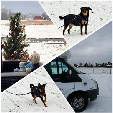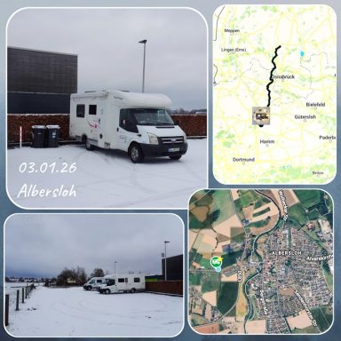 Auf dem Weg waren wir nochmal einkaufen, unter anderem ganz viel stilles Wasser. Unser Trinkwassertank ist fast leer. Bisher hatten wir auch im Winter immer das Glück, wenigstens ab und zu noch Wasser nachtanken zu können. Diesmal war das Wasser bisher überall abgesperrt. Dann müssen wir uns für die nächten Tage eben so helfen.
