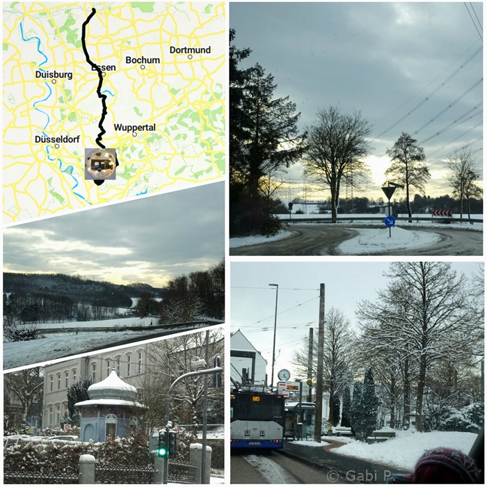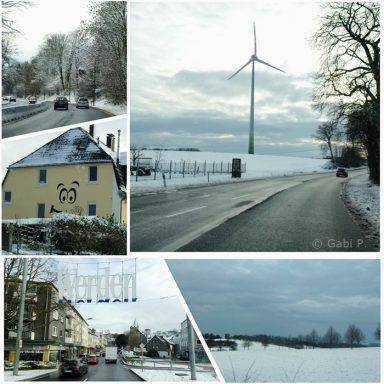 Dann ab nach Hause. Von oben nach unten durchs Ruhrgebiet. Irgendwo in den Höhenlagen von Essen, wurde der Schnee dann wieder mehr.