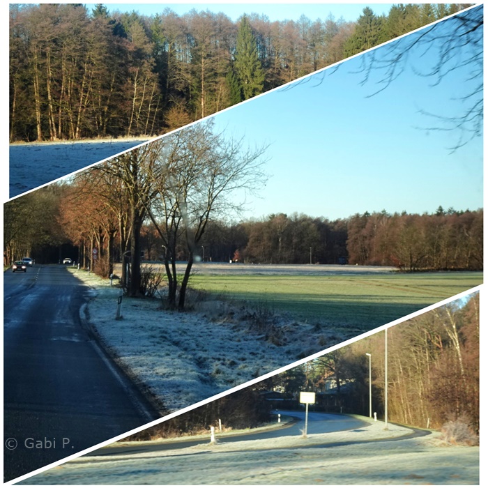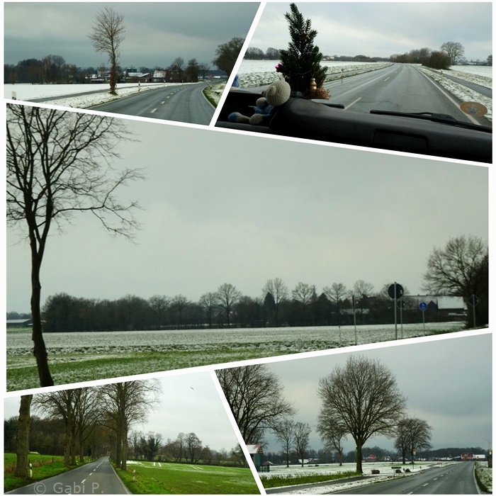 Der Schneefall diese Nacht hielt sich aber in Grenzen . Ok wir sind im Flachland, wo Schnee eher selten ist. Die Straßen waren größtenteils geräumt, wir sind langsam gefahren, vorbei am Rand des Teuteburger Waldes hinein ins Münsterland.