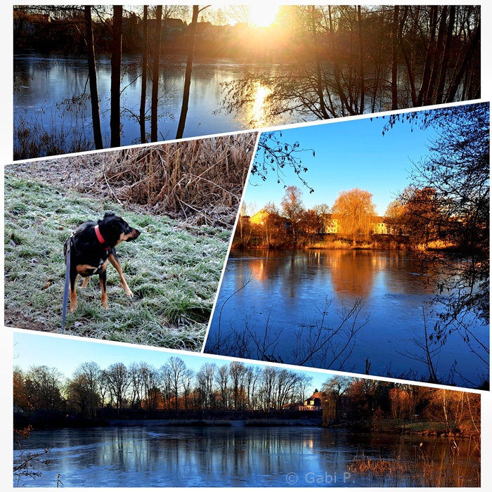 Der See war morgens bis auf eine kleine Stelle so eben zu gefroren.