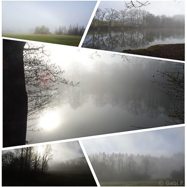 Heute morgen war es neblig und so war das drumherum beim Gassigehen ein wenig mystisch. Auch hier gab es weiher und ich bin mit eni um den größeren drumherum gelaufen.