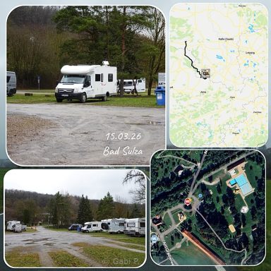 Wir fuhren durch Thüringen bis Sondershausen, dort dann ein Dejavue. Diesen Stellplatz haben wir doch schon mal angefahren , auf den Fotos der Stellplatz-App aber nicht wiedererkannt und wir wussten sofort, es gab dort null Sat-Empfang. Deshalb sind wir weitergefahren bis Sangerhausen, auch diesen Stellplatz hatten wir uns damals angeschaut, sind dann weiter, weil er noch nach Baustelle aussah. Auch heute ist hier noch nicht alles fertig (z.B. der Kassenautomat) kann aber so wie er ist, genutzt werden