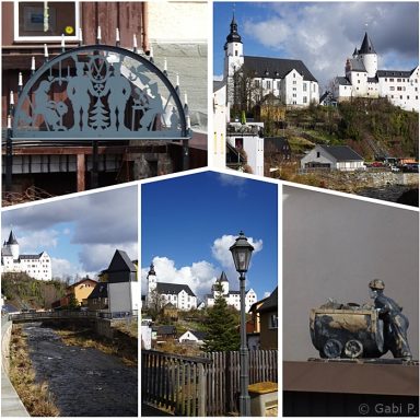 Wir hatten uns einen Stellplatz in Schwarzenberg ausgeguckt, der liegt im Städtchen und nahe einem Park. Nur um zum Park zu kommen, muss man ziemlich steil die Straßen hoch. Puh!