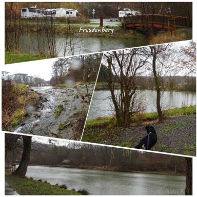 Wir fuhren bis Freudenberg. Kein Internet auf dem Handy, kein Sat-Empfang…. Das könnte sehr langweilig werden, denn auch länger spazieren (z.B. um die schönen Fachwerkhäuser zu fotografieren) mögen wir bei dem Wetter auch nicht. Wir sind 1x kurz um den angrenzenden Weiher spaziert und fuhren dann weiter bis Kreuztal/Osthelden.