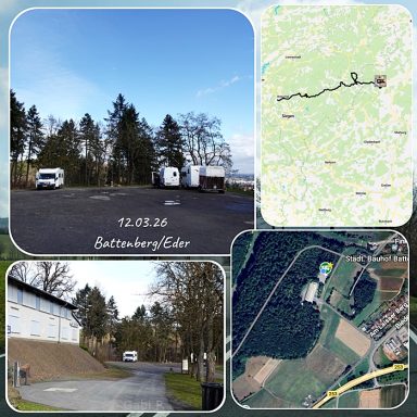 Gefahren sind wir heute bis Battenberg, zu einem Stellplatz, den wir immer wieder gerne anfahren. Wegen einer Straßensperrung fuhren wir im großen Bogen durch die Höhenlagen der Rothaargebirges, das machte dann ein Plus von 10 km.