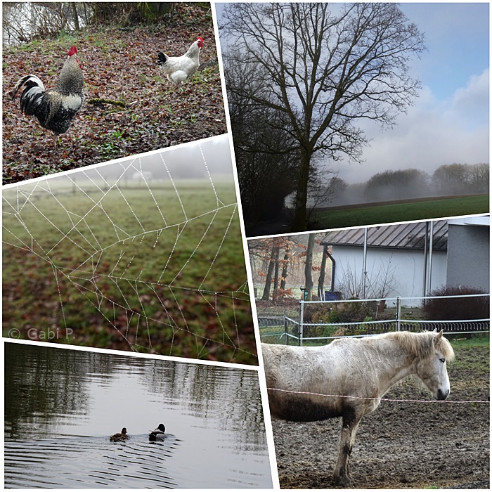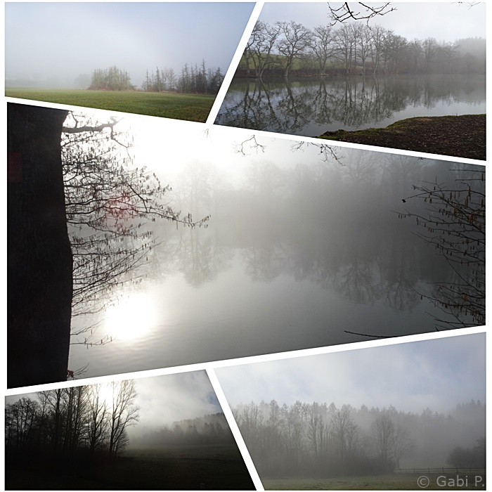 Heute morgen war es neblig und so war das drumherum beim Gassigehen ein wenig mystisch. Auch hier gab es weiher und ich bin mit eni um den größeren drumherum gelaufen.