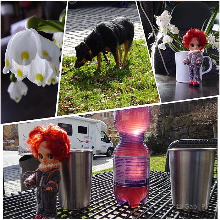 Nach einem schönen Spaziergang, nutzen wir zum Mittagessen die Picknick-Sitzgruppe draußen vorm Roadrunner. Ein bisschen die Sonne genießen…. Vom Nachbargrundstück bekam ich von einem älteren Herrn ein paar Blümchen geschenkt. Was für eine nette Geste.
