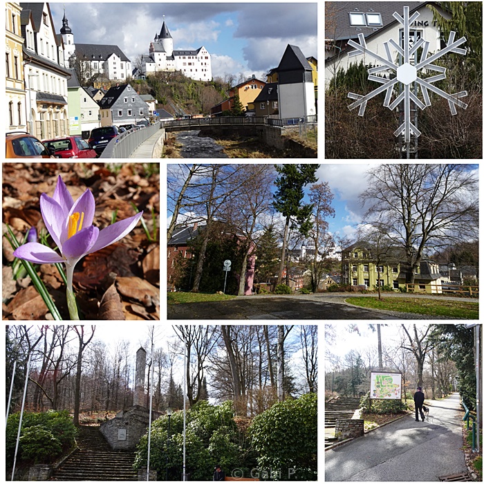 Wir hatten uns einen Stellplatz in Schwarzenberg ausgeguckt, der liegt im Städtchen und nahe einem Park. Nur um zum Park zu kommen, muss man ziemlich steil die Straßen hoch. Puh!