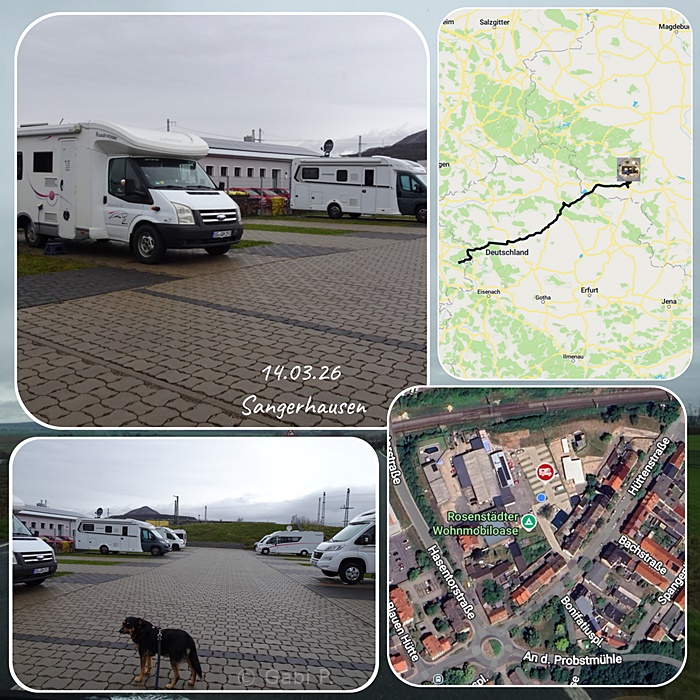 Wir fuhren durch Thüringen bis Sondershausen, dort dann ein Dejavue. Diesen Stellplatz haben wir doch schon mal angefahren , auf den Fotos der Stellplatz-App aber nicht wiedererkannt und wir wussten sofort, es gab dort null Sat-Empfang. Deshalb sind wir weitergefahren bis Sangerhausen, auch diesen Stellplatz hatten wir uns damals angeschaut, sind dann weiter, weil er noch nach Baustelle aussah. Auch heute ist hier noch nicht alles fertig (z.B. der Kassenautomat) kann aber so wie er ist, genutzt werden