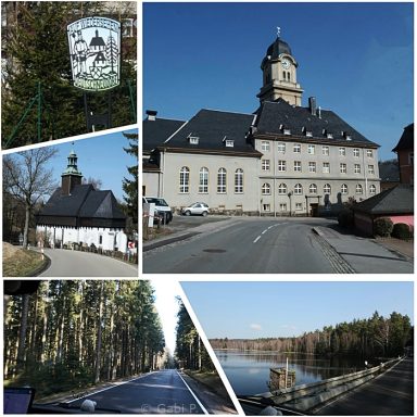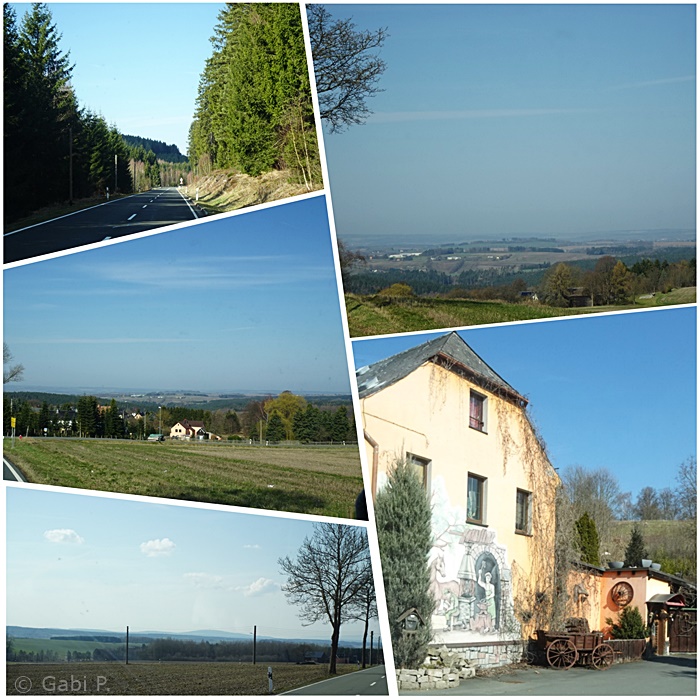 Danach hinein in die Natur, ganz viel Landschaft, kleine Straßen, Wälder, ziemlich nah entlang der Tschechischen Grenze bis nach Deutschneudorf / Ferienpark Seiffen.