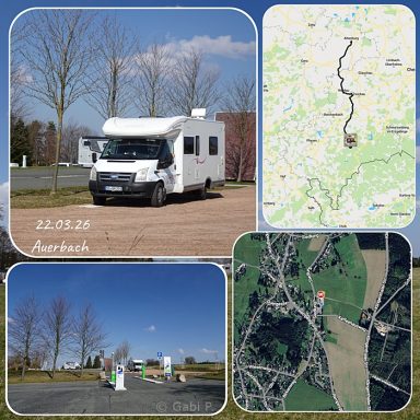 Für heute habe ich einen Stellplatz der CampingCarPark-Gruppe ausgesucht. Diese Plätze kennen wir von Frankreich her. Wir haben auch eine Mitgliedskarte, die ich gestern noch via PayPal “gefüttert” habe.