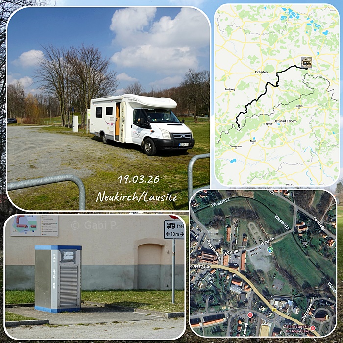 Wir sind weitergefahren bis nach Neukirch/Lausitz, und ja es gibt eine Entsorgung , aber die ist außer Betrieb. Wir sind hungrig und auch ein wenig müde - hoffentlich reicht die Kapazität vom Toilettentank bis zum morgigen Stellplatz.