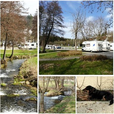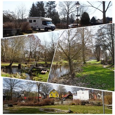 Der Stellplatz liegt in der Nähe eines Naturfreibades an einem kleinen Fluss und wurde letztes Jahr erweitert.