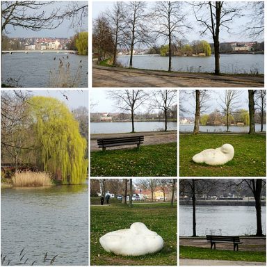 Der Stellplatz liegt an einem See, mit Spazierwegen und Tierpark, sehr stadtnah in einer Sackgasse.