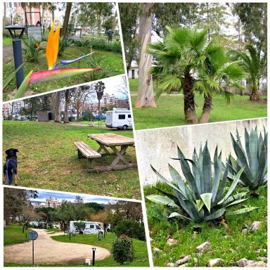 Als wir beim Lidl in Nazaré ankamen, waren die blau markierten Stellflächen für